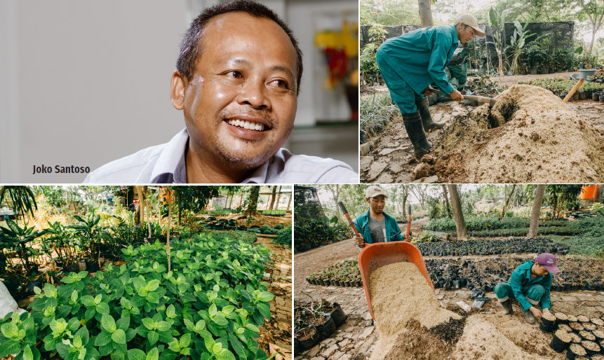 Selama sekian tahun berkutat dengan sampah, kotoran rusa, kotoran kerbau, kompos, pembenihan, pembibitan, pergantian tanaman yang mati, regenerasi tanaman taman, dan sejenisnya tidak membuat Joko mati gaya alias bosan.