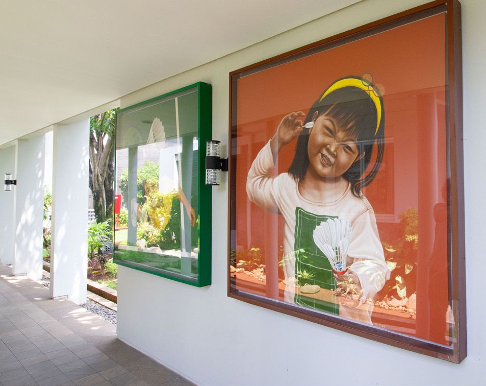 Terbagi dalam 12 lapangan beralaskan kayu, sisanya beralaskan vinil (karet sintetis) yang dilengkapi dengan tribun penonton. “Tadinya saya pikir 16 lapangan cukup. Tapi saya kilas balik kok rasanya kurang ya hahaha…kalau saya boleh ulang, saya akan tambahkan beberapa lagi,’’ kata Victor.