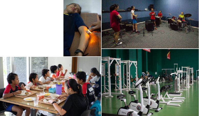 Kompleks ini juga memiliki pusat kebugaran, serta fasilitas penunjang latihan lain yang dipergunakan para atlet, seperti ruang fisioterapi, fitness dan massage. Selain juga ruang pertemuan, ruang perkantoran, ruang komputer, ruang audio visual, dan perpustakaan.